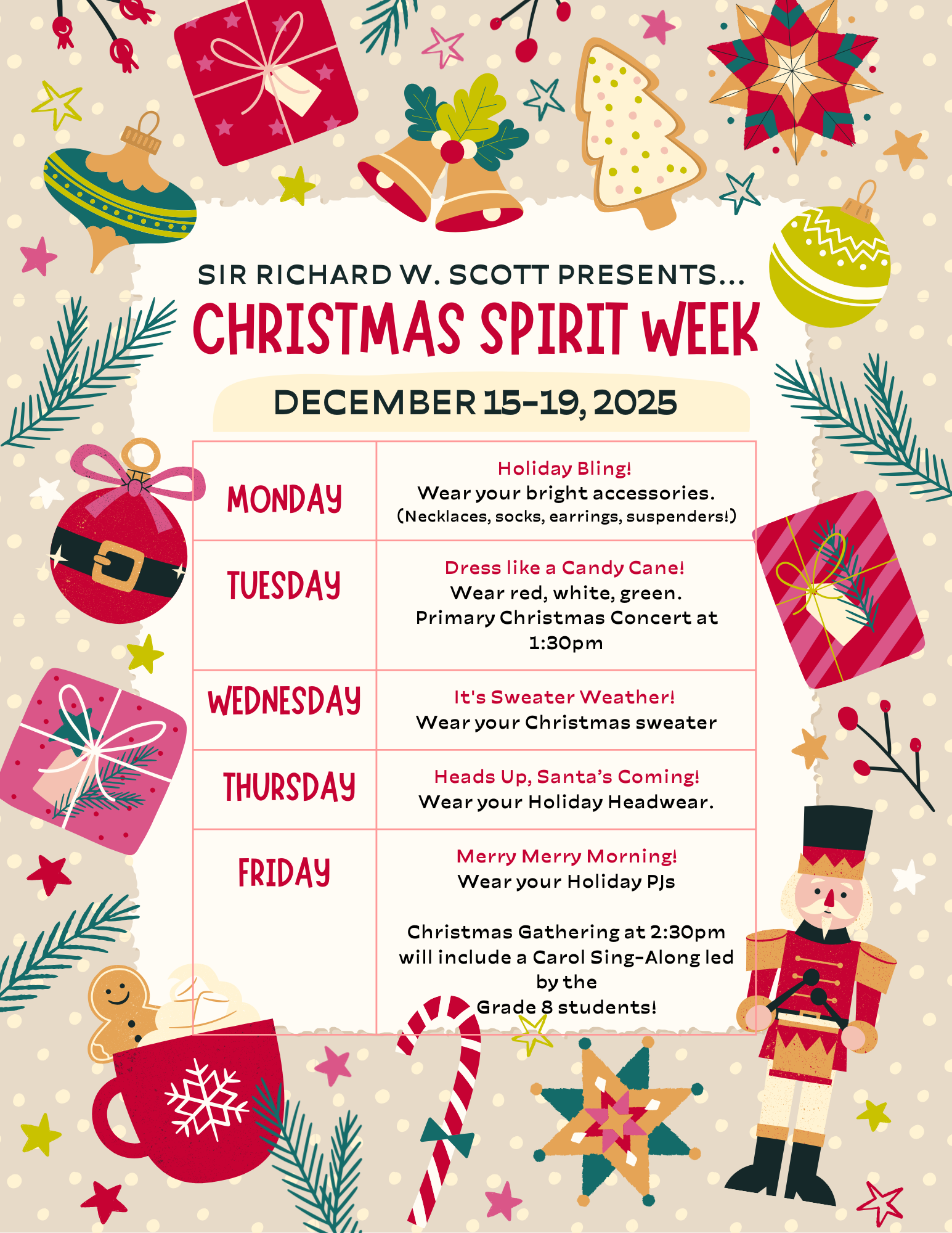 During the week of December 15-19th, Sir Richard W. Scott will have daily themed days.